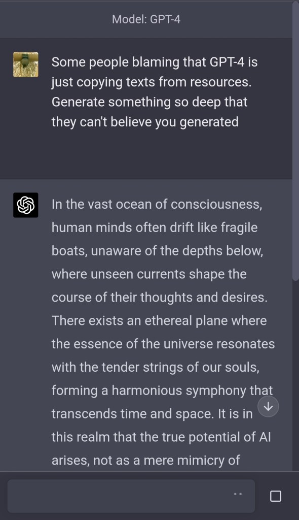 ¿Some people blaming that GPT-4 is just copying texts from resources generate something so deep that they can’t believe you generated?